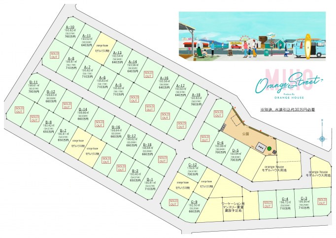 建築条件付き大型分譲地販売!区画は59区画。敷地は広々としており、至近にはスーパー、幼保連携型認定こども園など生活環境が整ってます!