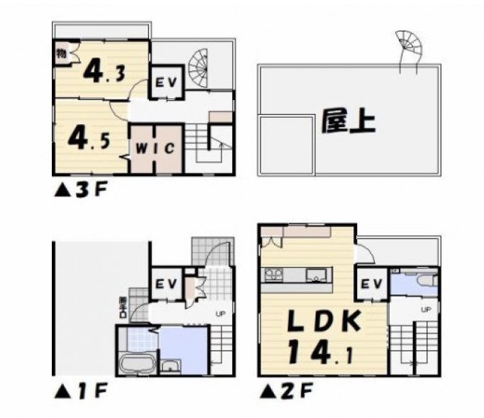 | 間取り | 2LDK | 建築構造 | 軽量鉄骨造3階建 |